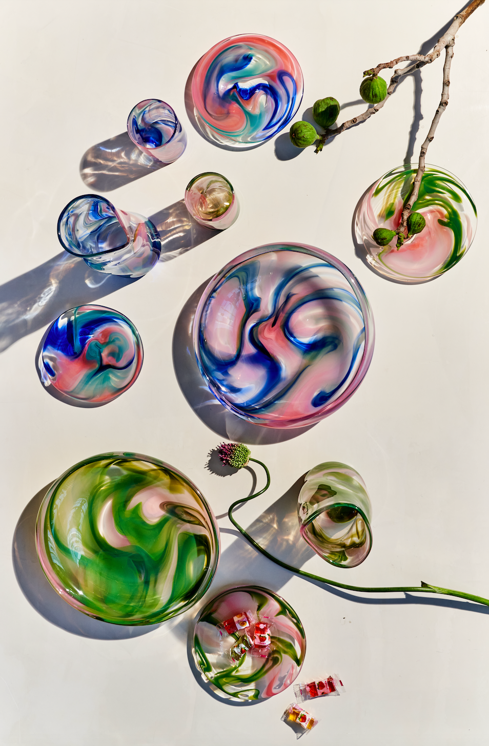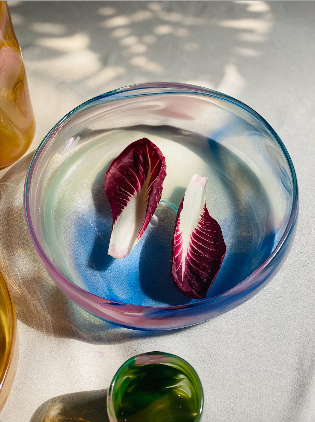 Each piece is hand blown and unique, and there will be slight inconsistencies in shape due to the hand blowing process.
