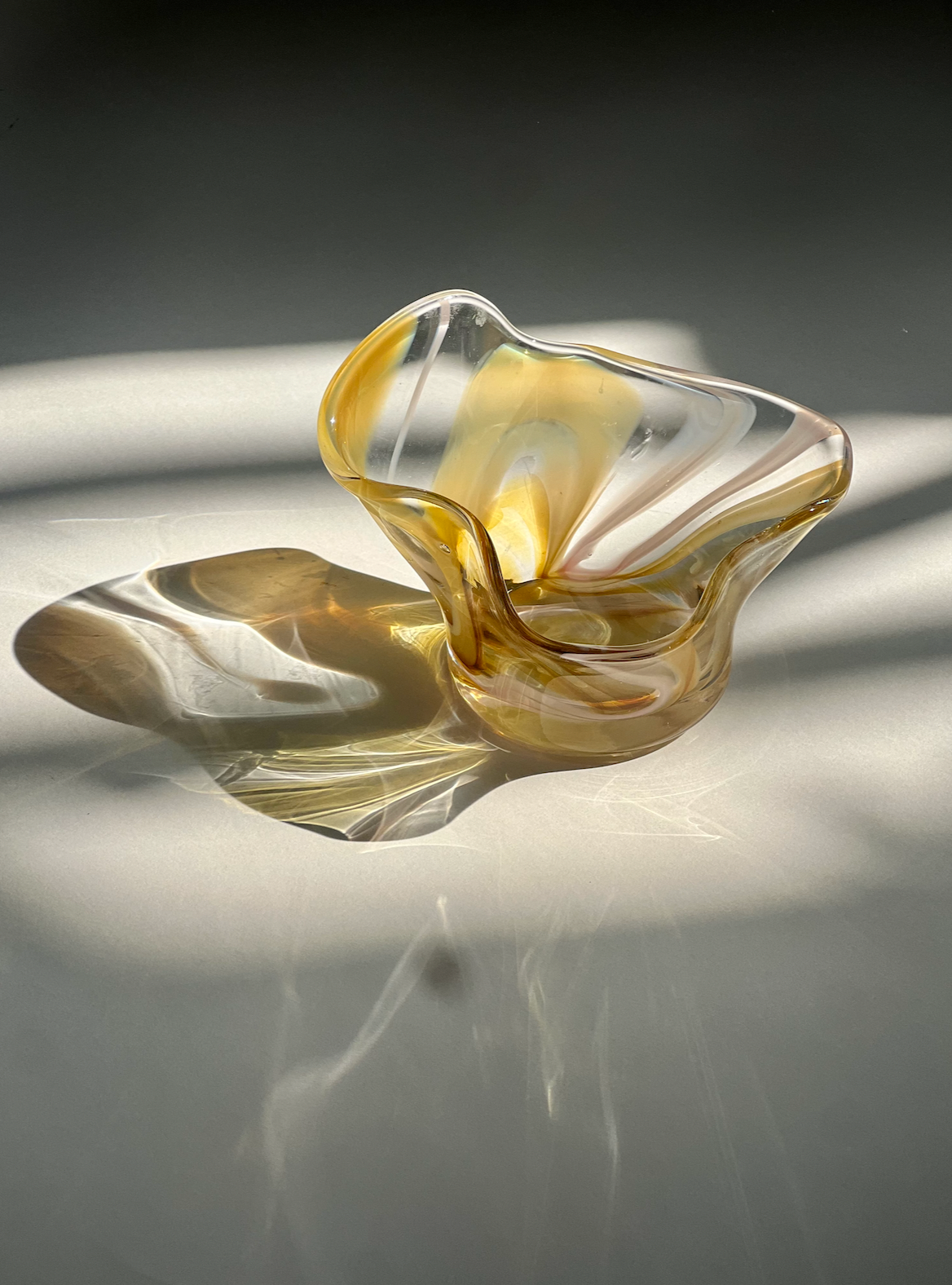 A handblown dish pulled in multiple directions for an organic, whimsical and elevated shape. Great for rings and jewelry or taking your appertivo game to the next level with some olives or nuts!
