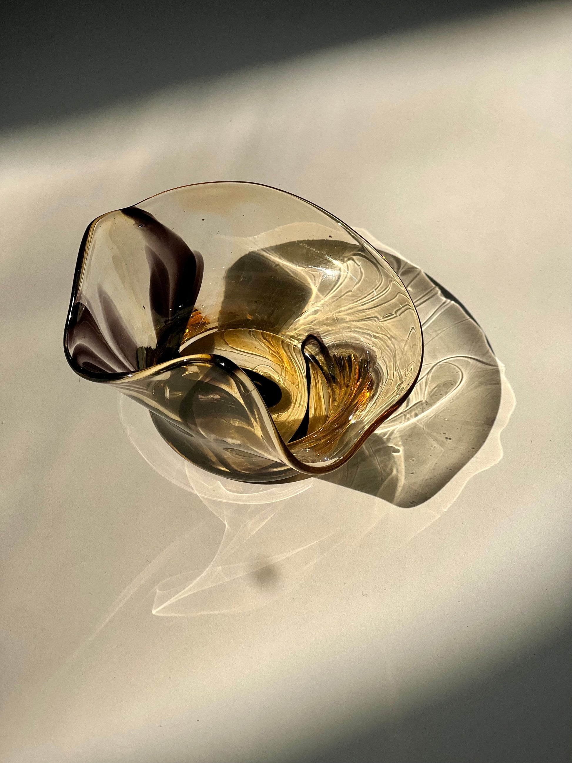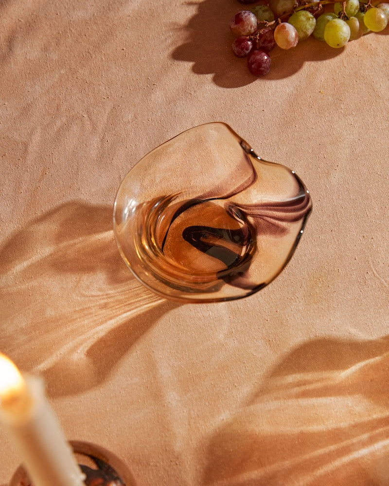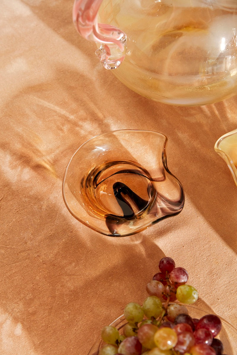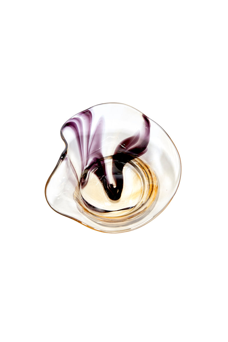 A handblown dish pulled in multiple directions for an organic, whimsical and elevated shape. Great for rings and jewelry or taking your appertivo game to the next level with some olives or nuts!