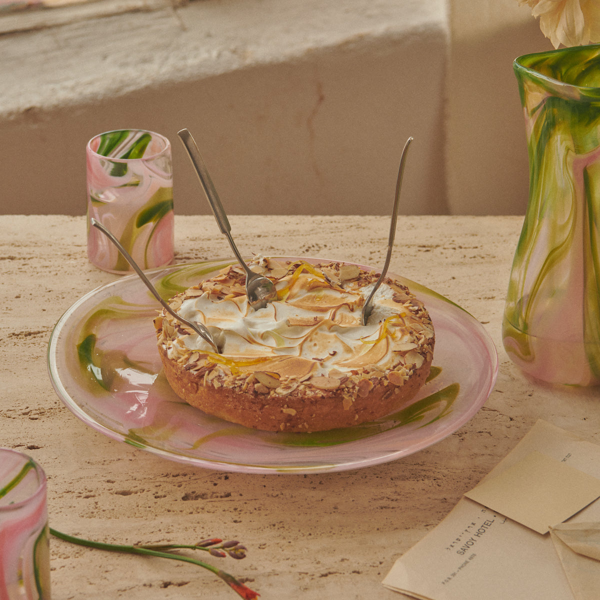 An organic shaped platter perfect for your table setting. Each shape is slightly organic with our watermelon color application. Some platters may have small magic bubbles.